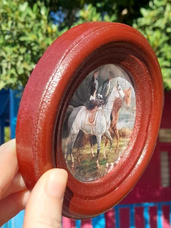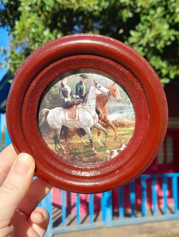 Dekoratif tablo koyu bordo çerçeveli. Çapı 11.5 cm.