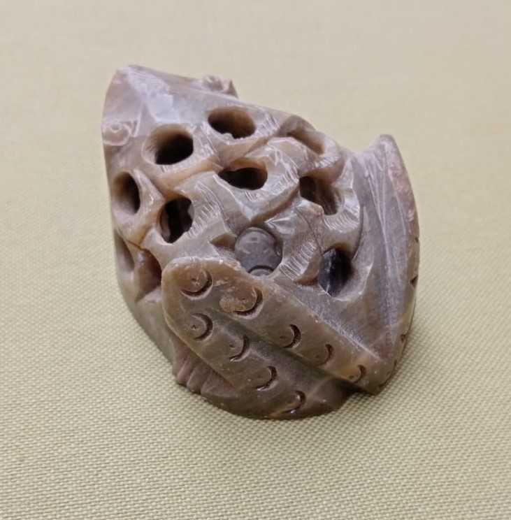 Delikli taş kurbağa başlıklı antika/koleksiyon objesi Asya menşe’lidir. 2000 ve sonrası dönemine aittir.