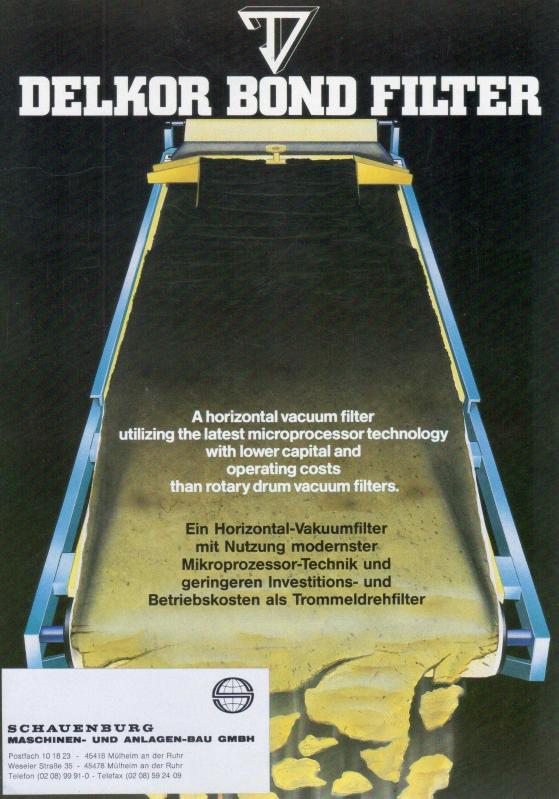 Delkor Bond Filter - A Horizontal Vacuum Filer Ultizing the Latest Microprocessor Technology With Lower Capital and Operating Costs Than Rotary Drum Cacum Filters / Ein Horizontal-Vakuumfiler mit Nutzung Modernsiter Mikropozessor-Technik und Geringeren Investitions- und Betriebskosten als Trommeldrehfilter - Kuşe Kağıda, Renkli, Resimli, İlk Baskısı