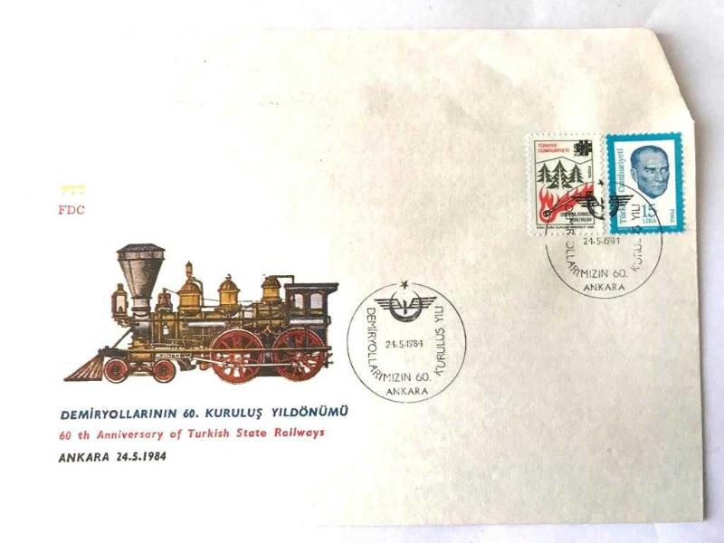Demiryollarının 60. kuruluş yıldönümü 1984 - İlk gün zarfı, en son 2 yıl önce güncellenmiştir.