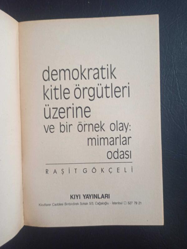 Demokratik Kitle Örgütleri Üzerine ve Bir Örnek Olay: Mimarlar Odası - Raşit Gökçeli - Kıyı Yayınları - 1987 Yılı - Türkçe Kitap Yıpranma, sararmalar ve yırtılmalar zamana bağlı olarak görülebilir.
