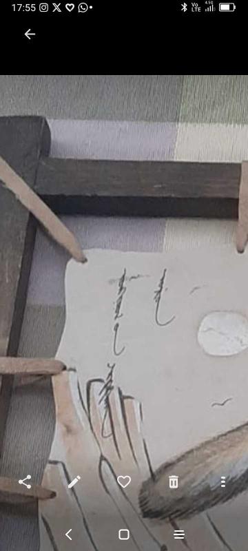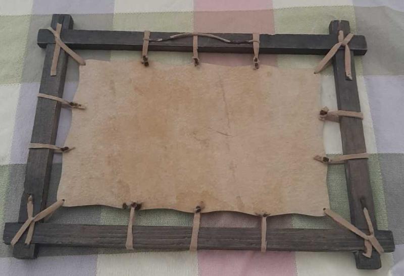 Deri üzeri kalem işi Kürt tablosu. Sanatçı imzalıdır Ahşap çerçeve gerdirme bağları deridir