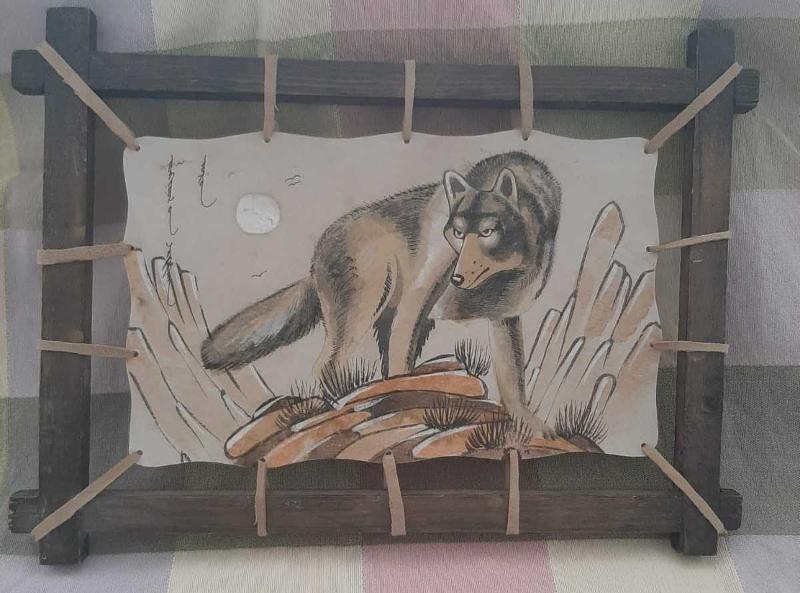 Deri Üzeri Kalem Çalışma Kurt Tablosu başlıklı antika/koleksiyon objesinin menşei belirtilmemiştir. 1950-1999 arası dönemine aittir.
