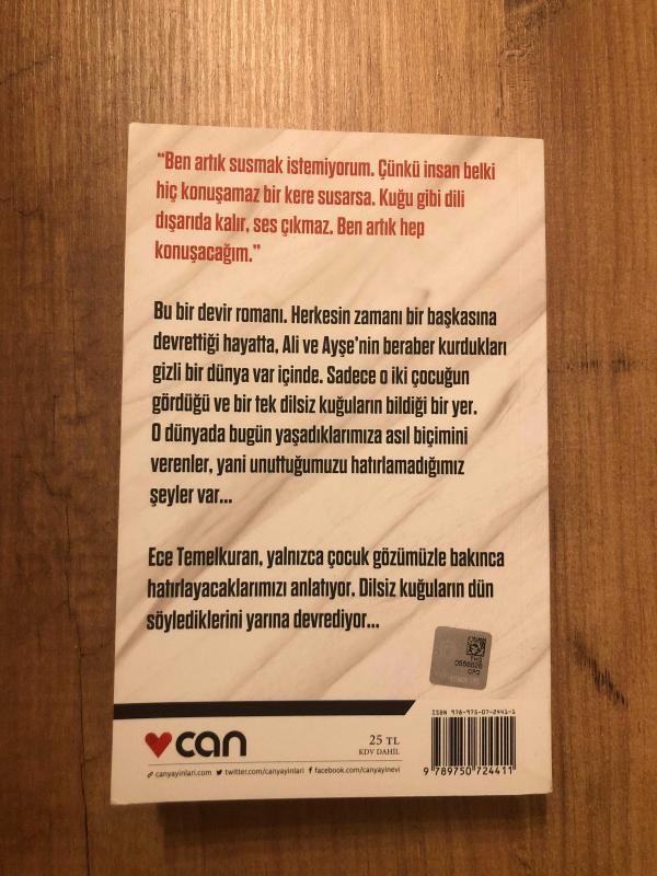 Bu bir devir romanı. Herkesin zamanı bir başkasına devrettiği hayatta, Ali ve Ayşe'nin beraber kurdukları gizli bir dünya var içinde. Sadece o iki çocuğun gördüğü ve bir tek dilsiz kuğuların bildiği bir yer. O dünyada bugün yaşadıklarımıza asıl biçimini verenler, yani unuttuğumuzu hatırlamadığımız şeyler var... Ece Temelkuran, yalnızca çocuk gözümüzle bakınca hatırlayacaklarımızı anlatıyor. Dilsiz kuğuların dün söylediklerini yarına devrediyor...