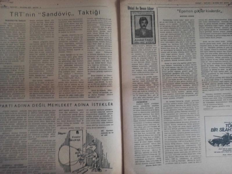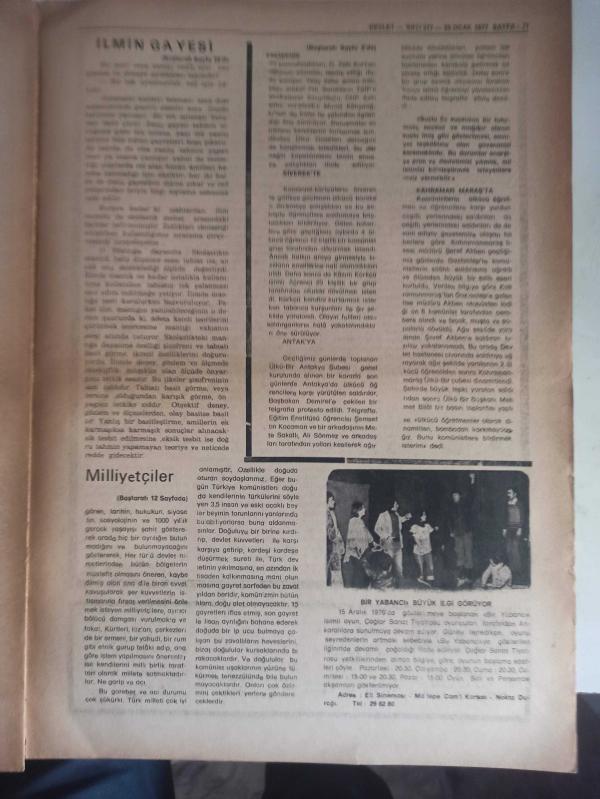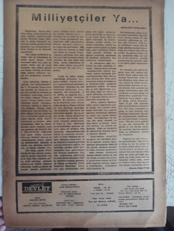 Devlet Milliyetçi Siyasi Haftalık Gazetesi - 25 Ocak 1977 - Sayı:377 - Kültür Yoksunu Muhterisler Her Cinayetin Arkasında Baykuş Gibi Tünüyorlar - Bakanlık İçindeki Çaşıt Kim? - Mehmet Özkan - Türkeş Karaoğlana - Türk Milletini Bir Bütün Olarak Sevme Hareketi - Osman Çakır - TRT'nin Sandöviç Taktiği - Parti Adına Değil Memleket Adına İstekler - Ülkücü Avı Devam Ediyor - Egemen Güçler Kimlerdir - Mustafa Gümüş - Milli Varlık ve Gayelerimiz Bakımından Türk Tarih ve Kültürünün Ehemmiyeti - Salon Sosyalistleri ve Kooperatifçiliğimiz - Sadık Cemile - Türkiye 77 Üzerine Bir Batılı Dost - Emine Işınsu - İlmin Gayesi ve Metodu - Milliyetçiler Ya - Abdülhadi Topallıoğlu fotoğraf ve haberi - Tam Takım Gazete Yıpranma, sararmalar, kupon kesiği ve yırtılmalar zamana bağlı olarak görülebilir