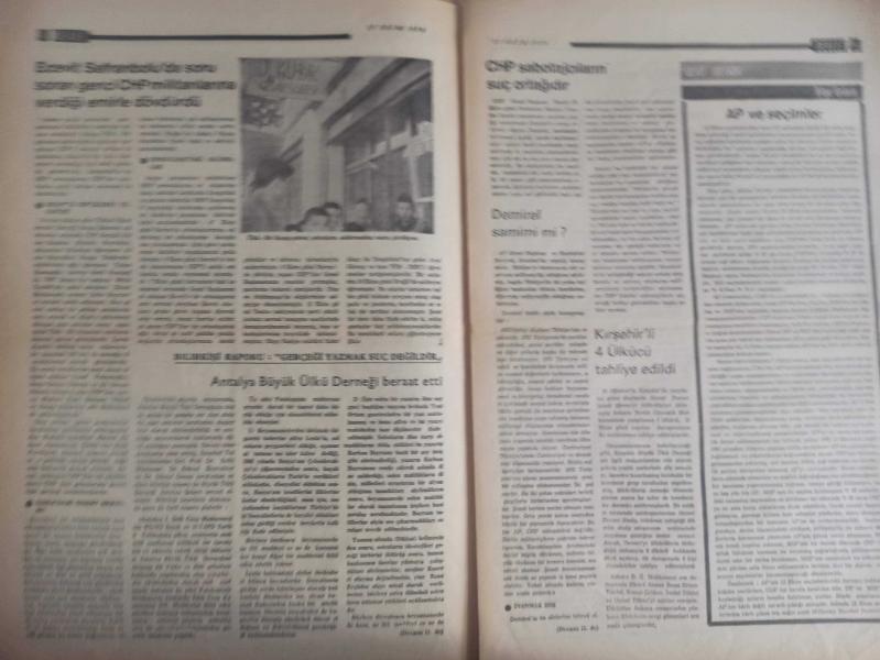 Devlet Milliyetçi Siyasi Haftalık Gazetesi - 27 Ekim 1975 - Sayı:312 - Anarşistlerin Türk Devletine Saldırısı Cevapsız Bırakılmamalıdır - Viyana ve Paris Büyükelçilerimizin Hunharca Şehit Edilmeleri Büyük Nefretle Karşılandı - Türk Devleti'ne Yapılan Saldırılar Karşılıksız Bırakılmamalıdır - Seçim Sonuçları Üzerine - Nuri Gürgür - Ecevit Safranbolu'da Soru Soran Genci CHP Militanlarına Verdiği Emirle Dövdürdü - Antalya Büyük Ülkü Derneği Beraat Etti - AP ve Seçimler - CHP Sabotajcıların Suç Ortağıdır - Ahmet Rıfat - Yumuşama Politikası Kimin İşine Yarıyor? - Erdal Altay Balkanlı - CHP'li Dalokay'dan Hesap Sorulmalıdır - Ülkücü Faaliyetlerden Özetlersek - İspanya'dan Öğüt Alanlar - İdeal Buhranı ve Milliyetçilik - Mehmet Ulaş - Antalya Büyük Ülkü Beytüşşebap Olayı - Ülkücülerin Komünistler Karşısında Ezilmeyişinin Sebebi, İnandıkları Yolda Ölümü Hiçe Saymalarıdır fotoğraf ve haberi - Tam Takım Gazete adlı eser, Kitap > Süreli Yayınlar > Gazeteler > Türkiye > Genel > Haftalık kategorisinde İkinci El olarak satıştadır.