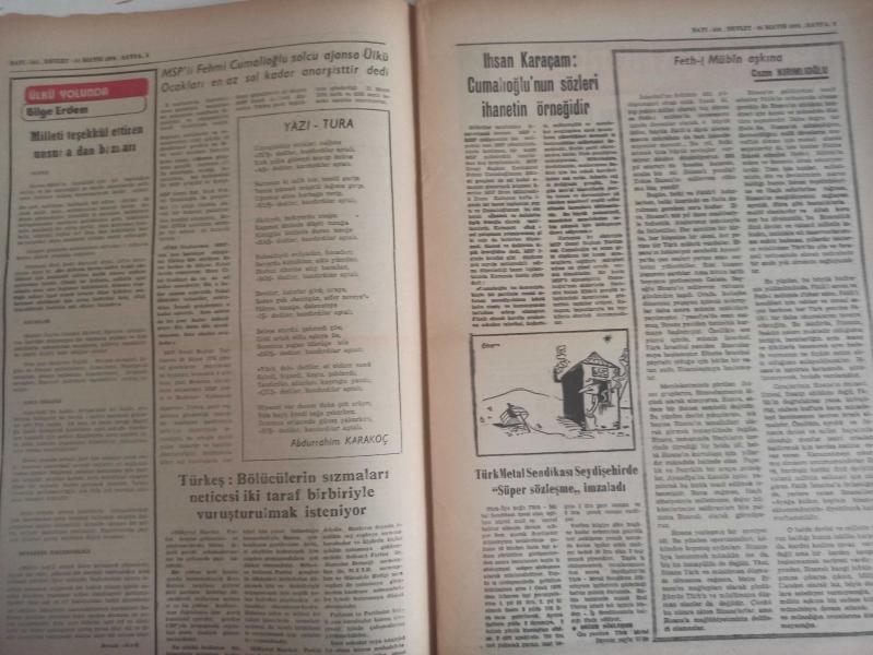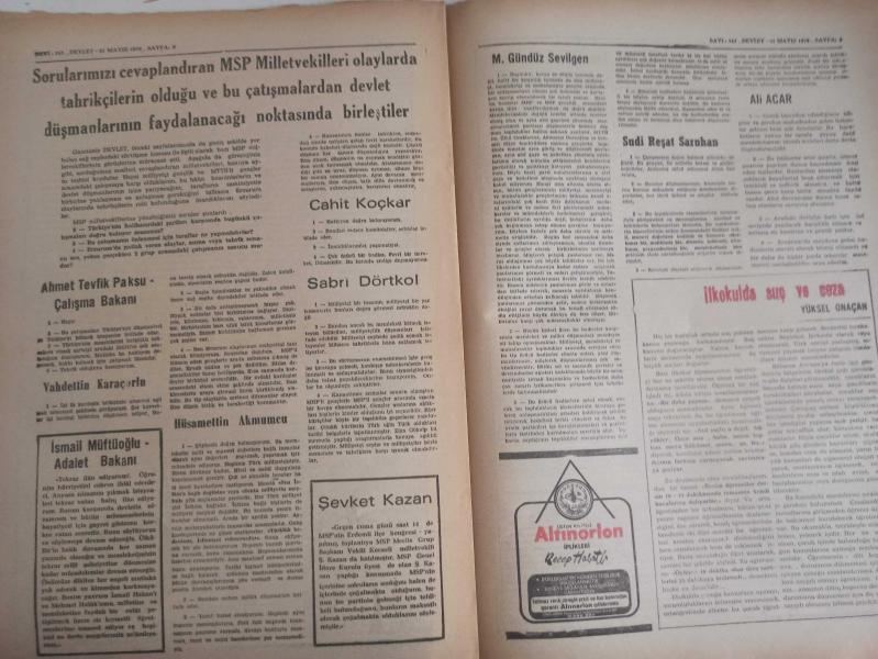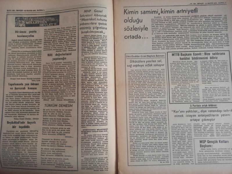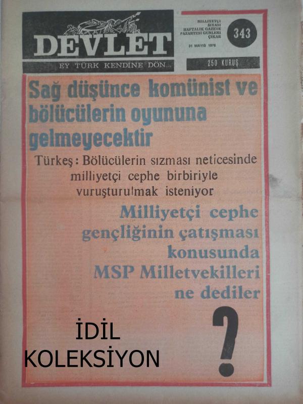 Devlet Milliyetçi Siyasi Haftalık Gazetesi - 31 Mayıs 1976 - Sayı:343 - Sağ Düşünce Komünist ve Bölücülerin Oyununa Gelmeyecektir - Milletten Devlet'e Tapulamada Yan Ödeme ve Harcırah Konusu - Kimin Samimi, Kimin Art Niyetli Olduğu Sözleriyle Ortada - Ülkücülere Yenilen Sol, Sağ Cepheye Nifak Sokuyor - İhsan Karaçam - Ülkü Yolunda - Bilge Erdem - Feth-i Mübin Aşkına - Cezmi Kırımlıoğlu - Felsefi Doktrinler - Süleyman Hayri Bolay - Alparslan Türkeş - İlkokulda Suç ve Ceza - Yüksel Onaçan - Kerkük'ten İntibalar - Burhanettin Özbilici - Ahmet araca - Azerbaycan Komünist Partisi Başkanının Korkunç İfşaatı - Sosyal ve Kültürel Faaliyetler - Ortak Pazar ve Türkiye - Nuri Gürgür - Dış Ödemeler Dengemiz Geçiş Dönemi Boyunca Devamlı Aleyhimize Bozuldu fotoğraf ve haberi - Tam Takım Gazete Yıpranma, sararmalar, kupon kesiği ve yırtılmalar zamana bağlı olarak görülebilir