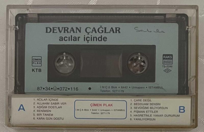 Devran Çağlar Acılar İçinde Kaset (Orijinal Dönem Kağıt Baskı Kaset) başlıklı ürün, Efemera, Müzik, Sinema > Müzik, Plak, Kaset, CD > Müzik Kaseti > Yerli Müzik Kaseti kategorisi altında İkinci El olarak satılmaktadır.