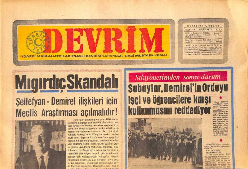 Devrim Gazetesi 22 Eylül 1970 - Mıgırdıç Skandalı - Türkiye'nin Buğday İhracı Yasaklanıyor GZ157151, en son 19 gün önce güncellenmiştir.