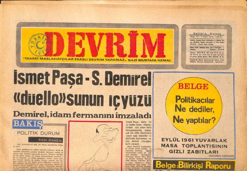 Devrim Gazetesi 3 Mart 1970 - İsmet Paşa-S. Demirel Düellosunun İç Yüzü - Siyonistlerin Türkiye'deki Son Oyunları GZ157137, en son 19 gün önce güncellenmiştir.