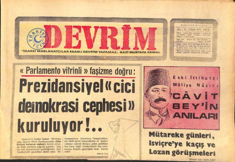 Devrim Gazetesi 5 Ocak 1971 - Orta Doğu'da Türkiye İçin Düşünülen Rol - Parlamento Vitrinli Faşizme Doğru GZ157125, en son 20 gün önce güncellenmiştir.