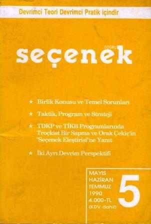 Devrimci Teori Devrimci Pratik İçin Doğru Seçenek (*Birlik Konusu ve Temel Sorunları *Taktik, Program ve Strateji *TDKP ve TİKB Programlarında TroçkistBir Sapma ve Orak Çekiç'in (Seçenek Eleştrisi'ne) Yanıt *İki Ayrı Devrim Perspektifi) / Yıl: Mayıs - Haziran - Temmuz 1990 Sayı: 5