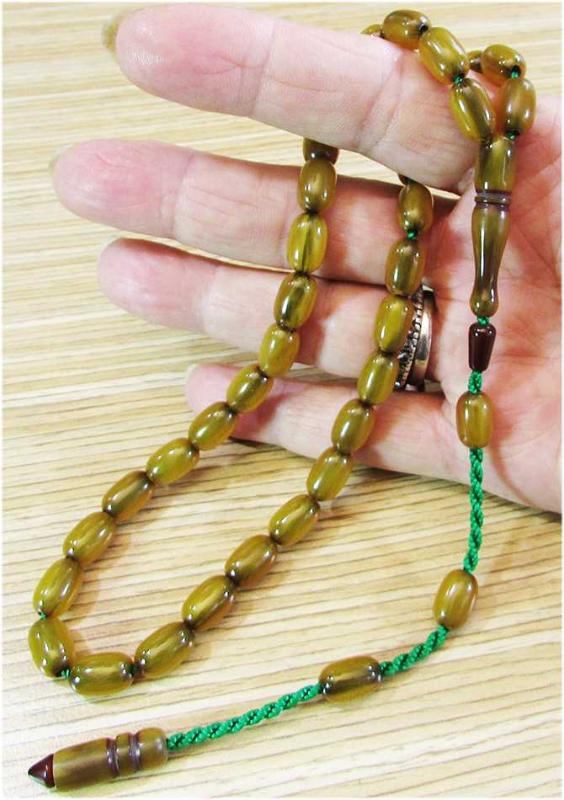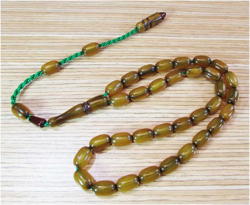 DiK DaMaR YEŞİL OsMaNLı HAMUR SıKMa KEHRİBAR 33 LüK TESBİH..--..7x11mm başlıklı antika/koleksiyon objesi Türkiye menşe’lidir. 2000 ve sonrası dönemine aittir.