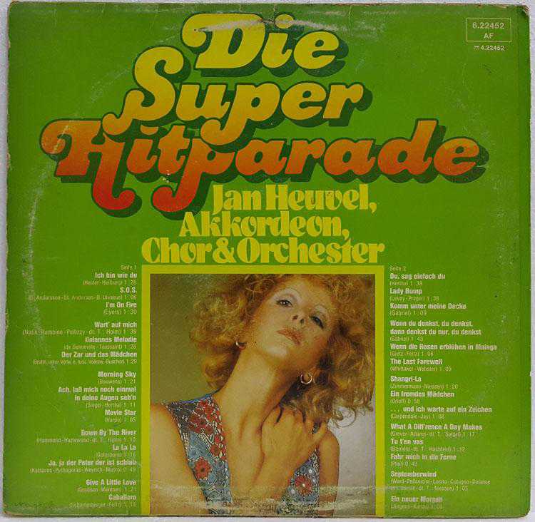 Die Super Hitparade, 28 Hits For Happy Dancing, Jan Heuvel, Akkordeon, Chor&Orchestra, 33 lük plak, en son 4 ay önce güncellenmiştir.
