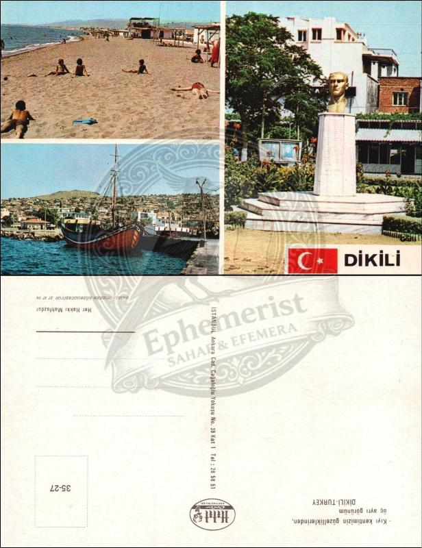 Dikili, Kıyı ve Liman, Kartpostal, 1970’ler: Plajda güneşlenenler, balıkçı tekneleri ve Atatürk büstüyle küçük kasaba atmosferi., en son 2 ay önce güncellenmiştir.