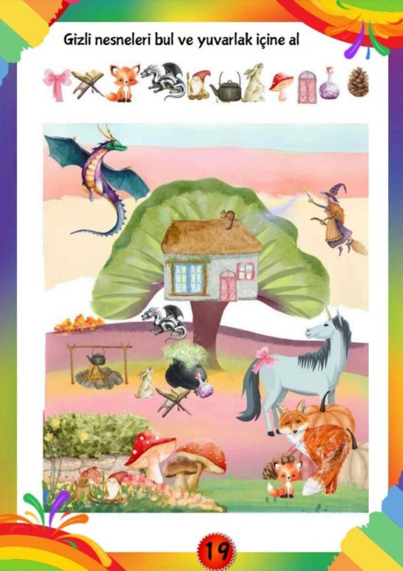 Dikkat Geliştiren Gizli Nesneleri Bul YAZ-SİL Kitabı Gizli Nesneleri Bul YAZ-SİL Kitabı Bugüne kadar hazırlanmış ilk gizli nesneleri bulma yaz sil kitabıdır. 120 gramajlı kağıda dijital rengarenk baskı yapılarak elde edilmiştir. Öğretmenlerin talimatları doğrultusunda hazırlanmıştır. Dikkat ve odaklanmayı dikte eden yaz-sil kitabıdır Çocuklar Dikkat Geliştiren Nesneleri Bularak Gelişimlerine katkı sağlamış olacaklardır. Kitap YAZ-SİL şeklindedir. Piyasada ki yaz sil kitapları selefonla kaplıdır. Ancak Dikkat Geliştiren Gizli Nesneleri Bul YAZ-SİL Kitabımız 120 gramajlı birinci kalite kağıda dijital rengarenk baskı yapılmış ve 125 mikron laminasyonla lamine edilmiştir. Yaklaşık 250 gr kalın sayfalardan oluşmuştur. Her sayfada 9-11 arası gizli nesne bulunmanız istenmiştir. Kolay kullanım için spiralli olarak hazırlanmıştır. "Dikkat Geliştiren Gizli Nesneleri Bul YAZ-SİL Kitabı" çocuklar için eğlenceli ve dikkat geliştirici bir etkinlik kitabıdır. Kitap, çocukların nesneleri fark etmeleri ve detaylara odaklanmaları için özel olarak tasarlanmıştır. Silinebilir kalemlerle defalarca kullanılabilen sayfalardan oluşur, bu sayede çocuklar hem oynayarak öğrenebilir hem de dikkatlerini artırabilir. "Dikkat Geliştiren Gizli Nesneleri Bul YAZ-SİL Kitabı" Özellikleri: Tekrar Kullanılabilir Sayfalar: Kitabın silinebilir yapısı, çocukların sayfaları tekrar tekrar kullanmasına olanak tanır. Bu, dikkat geliştirme çalışmaları için ideal bir ortam sağlar. Eğlenceli ve Renkli İçerik: Kitap, çocukların ilgisini çekmek üzere canlı renklerle hazırlanmış olup sevimli karakterler ve gizli nesneler barındırır. Odaklanma ve Gözlem Yeteneğini Destekler: Gizli nesneleri bulma aktiviteleri çocukların odaklanma, gözlem yapma ve detayları fark etme becerilerini geliştirir. Hareketli Oyun Alanı: Çocuklar, sayfalar arasında nesneleri ararken aynı zamanda eğlenceli bir yolculuğa çıkarak kitaptan keyif alır. Bu kitap, çocukların dikkat becerilerini güçlendirmek ve oyunla öğrenme sağlamak için mükemmel bir araçtır. Dikkat Geliştiren Gizli Nesneleri Bul YAZ-SİL Kitabı İçeriği: Laminasyonlu Kitap Silinebilir kalem hediy Cilt Özellikleri : Sarff 450Mic. A4 Şeffaf Kapak (Sert Kapak) Şeffaf kapağın altında renkli ve dijital baskılı sayfalar yer almaktadır. Sert Kapak (Dış Kapak) Özellikleri: 450 Micron Buzlu Şeffaf Kapak (Sert Kapak) Kraft Cilt (Arka Kapak) Özellikleri: Kraft Kağıt ham maddesi odun selülozudür. Suya dayanıklıdır. Kopma mukavemetlidir. Neme dayanıklıdır. Helezon Özellikleri: Sarff 14 mm Pvc Helezon Spiral Şeffaf (4:1) flament çapı 1,8 dır.