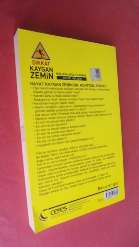 Dikkat Kaygan Zemin (Hayat Kaygan Zemindir. Kontrol Sende!) İMZALI ., MELISSA AYÇA YILDIRAN tarafından kaleme alınmıştır. Kitap 2016 yılında CERES YAYINLARI tarafından [isatanbul] yayınlanmıştır. Satışta olan kitap, yayınevinin 2. baskısıdır. 263 sayfadır. Dikkat Kaygan Zemin (Hayat Kaygan Zemindir. Kontrol Sende!) İMZALI . adlı eser Türkçe dilindedir.