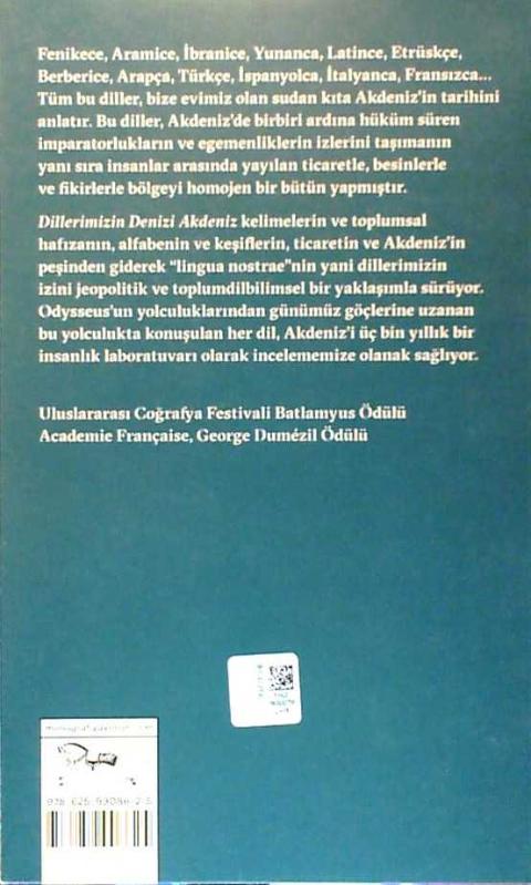 Fenikece, Aramice, İbranice, Yunanca, Latince, Etrüskçe, Berberice, Arapça, Türkçe, İspanyolca, İtalyanca, Fransızca… Tüm bu diller, bize evimiz olan sudan kıta Akdeniz'in tarihini anlatır. Bu diller, Akdeniz'de birbiri ardına hüküm süren imparatorlukların ve egemenliklerin izlerini taşımanın yanı sıra insanlar arasında yayılan ticaretle, besinlerle ve fikirlerle bölgeyi homojen bir bütün yapmıştır. Akdeniz, Dillerimizin Denizi kelimelerin ve toplumsal hafızanın, alfabenin ve keşiflerin, ticaretin ve Akdeniz'in peşinden giderek "lingua nostrae"nin yani dillerimizin izini jeopolitik ve toplumdilbilimsel bir yaklaşımla sürüyor. Odysseus'un yolculuklarından günümüz göçlerine uzanan bu yolculukta konuşulan her dil, Akdeniz'i üç bin yıllık bir insanlık laboratuvarı olarak incelememize olanak sağlıyor.