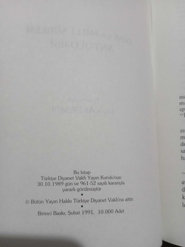 Dini ve Milli Şiirler Antolojisi, Rıza Akdemir tarafından kaleme alınmıştır. Kitap 1991 yılında Türkiye Diyanet Vakfı tarafından yayınlanmıştır. Satışta olan kitap, yayınevinin 1. baskısıdır. Dini ve Milli Şiirler Antolojisi adlı eser Türkçe dilindedir.