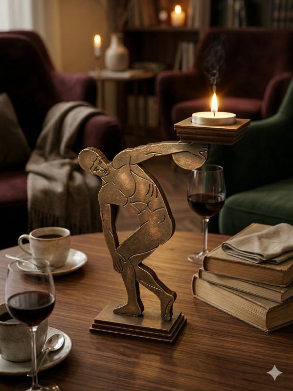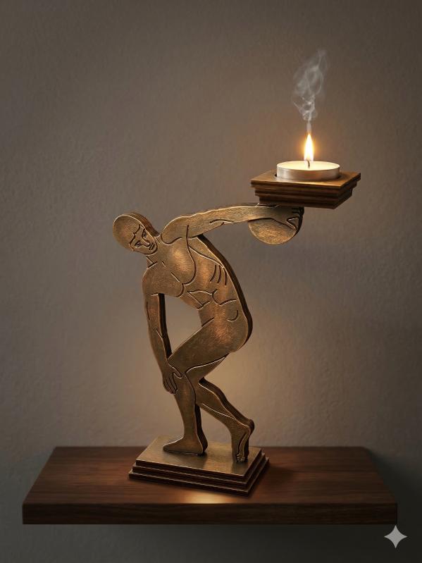 ✨Disk atan atlet formlu ahşap mumluk... başlıklı antika/koleksiyon objesi Türkiye menşe’lidir. 2000 ve sonrası dönemine aittir.