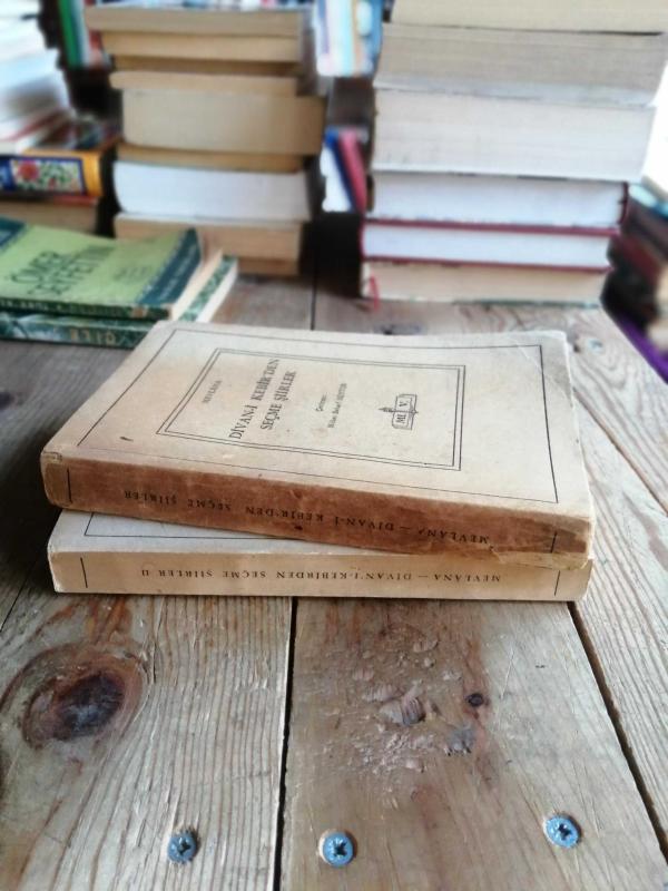 İki kitap da temiz durumdadır. Divan-ı Kebir'den Seçme Şiirler, 1. cilt, 1959, 1. baskı, 64+247 sayfa. Divan-ı Kebir'den Seçme Şiirler, 2. cilt, 1961, 2. baskı, 5+285 sayfa.