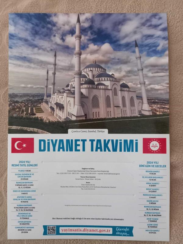 Diyanet Duvar Takvimi Kapağı 2024 yılı Çamlıca Camii istanbul,Türkiye Fotoğrafı 23*32cm, en son 2 ay önce güncellenmiştir.