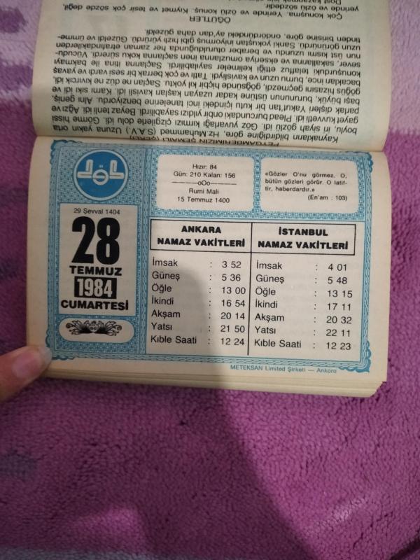 Diyanet takvimi - 28 Temmuz 1984 - doğum günü hediyesi hediyelik takvim yaprağı, en son 2 yıl önce güncellenmiştir.