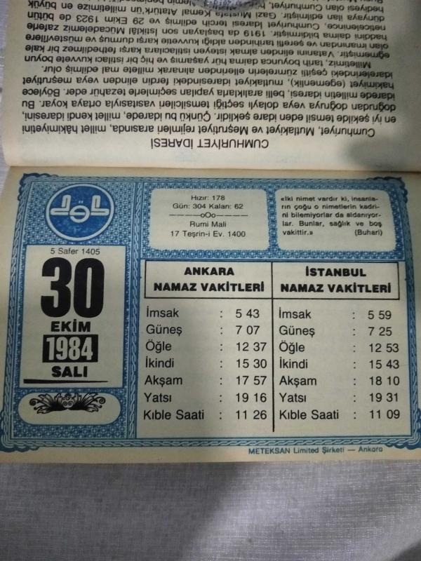Diyanet takvimi - 30 Ekim 1984 - doğum günü hediyesi hediyelik takvim yaprağı, en son 2 yıl önce güncellenmiştir.