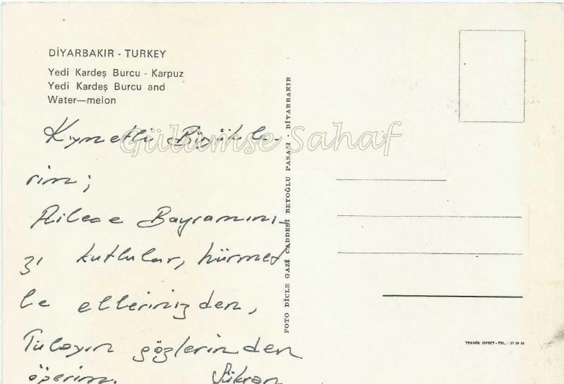 Diyarbakır - Yedi Kardeş Burcu ve Karpuz başlıklı ürün, Efemera, Müzik, Sinema > Kartpostallar > Şehir Kartpostalı > 1960 ve sonrası kategorisi altında İkinci El olarak satılmaktadır.