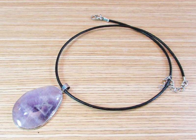 İRİ YAPILI DOĞAL AMETİST KUVARS TAŞ UÇLU GÜZEL KOLYE SAĞLAM VE TEMİZ METAL KISIMLARI GÜMÜŞ YA DA KAPLAMA ASKILI DERİ İP KALINLIĞI 6mm GENİŞLİĞİ 29mm,ASKISI HARİÇ YÜKSEKLİĞİ 45mm ASKI UZUNLUĞU 42cm+UZATMA ZİNCİR