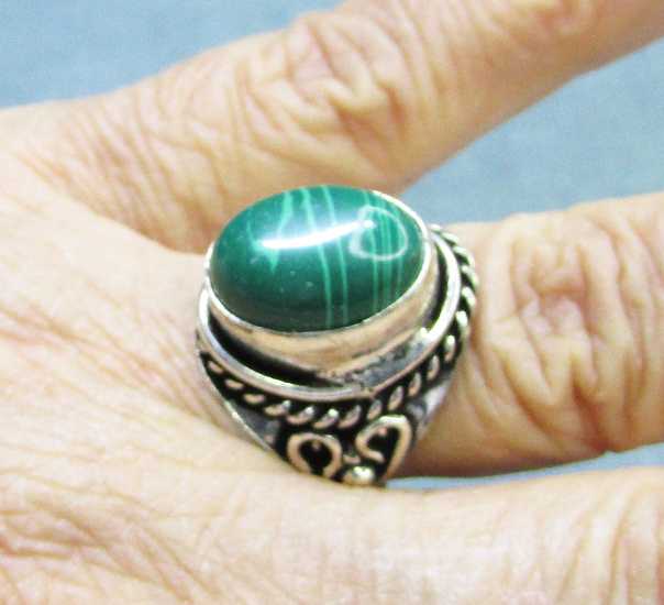 DOĞAL MALAHİT TAŞLI ÇOK GÜZEL YÜZÜK, DOLGUN YAPILI,SAĞLAM VE TERTEMİZ AĞIRLIĞI 7,2gr MONTÜR GENİŞLİĞİ 12mm,YÜKSEKLİĞİ 15mm PARMAK GEÇME ÇAPI 19mm(19-20 NUMARA) ÜRÜN,HİNDİSTAN İMALATIDIR GÜMÜŞÇÜNÜN DAHİ ANLAYAMADIĞI YAPIDA BİR GÜMÜŞ ALAŞIMIDIR BAŞKALARI TARAFINDAN AYARLI GÜMÜŞ OLARAK SATILSADA; TAM AYARINDA GÜMÜŞ DEĞİLDİR,DOĞRUSU BUDUR KARARMA VE SARARMA YAPMAZ