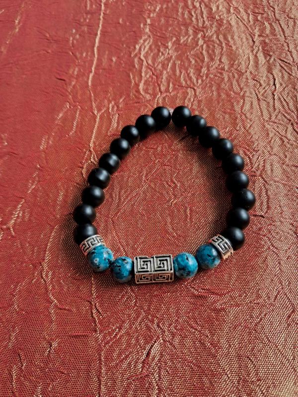 Yeşim Taşı, Onix ve Metal boncuklar kullanılmıştır.