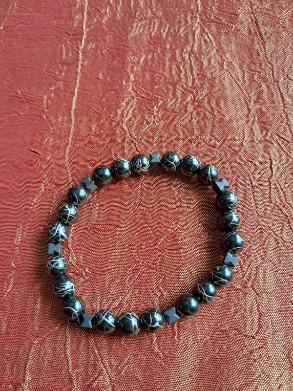 Hematit boncuklar kullanılmıştır.