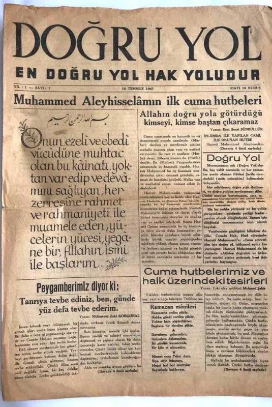 Doğru Yol En doğru yol Hak yoludur - 18 Temmuz 1947 / Sayı:1 - Eski Gazete adlı eser Türkçe dilindedir.