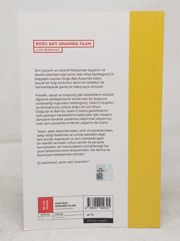 Doğu Batı Arasında İslam, Aliya İzzetbegoviç tarafından kaleme alınmıştır. Kitap 2020 yılında Ketebe Yay. tarafından [İstanbul] yayınlanmıştır. 400 sayfadır. Doğu Batı Arasında İslam adlı eser Türkçe dilindedir.