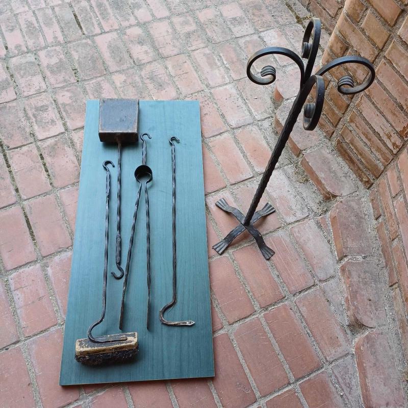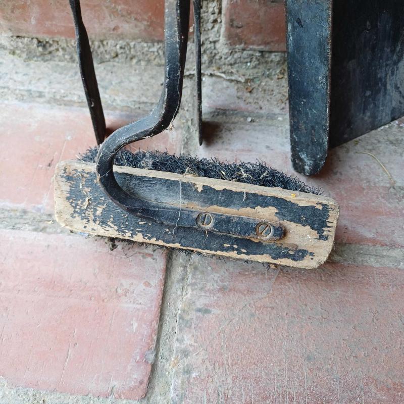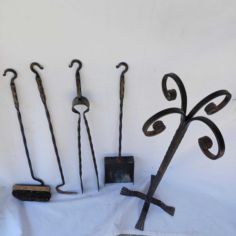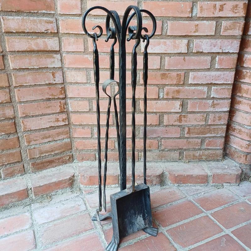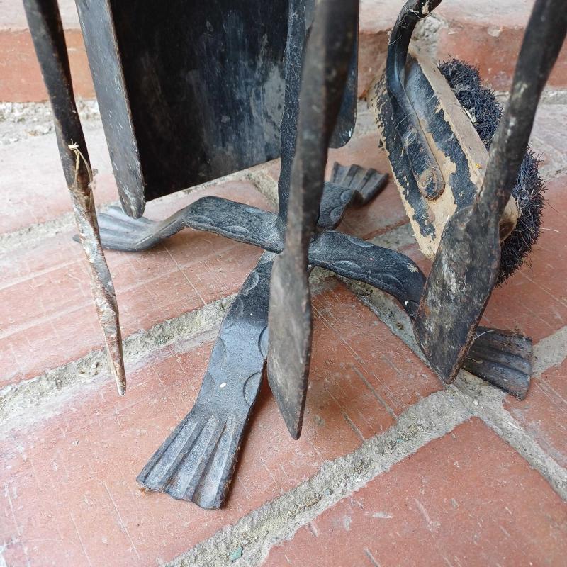 Dökme demir sömine temizlik aksesuari. Kurek,firca,masa,kanca ve tasiyici kaide. Vintage. Fırcasi biraz yipranmis.(degistirilebilinir) Siyah renkte. Dolu demir ve lamalarla uretilmis. Yukseklik 72 cm Taban 20 x 20 cm Oldugu hali ile fotograflanmistir.