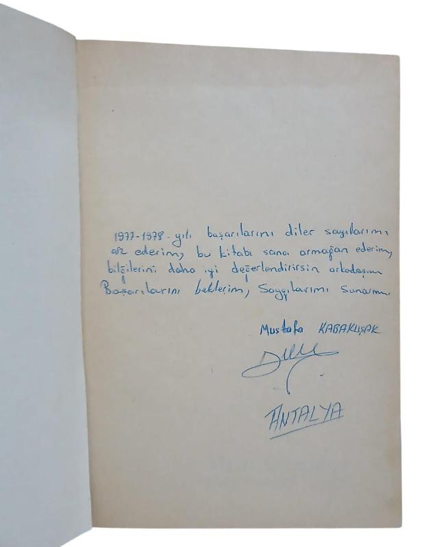 Kitabın giriş sayfasındaki 2 sayfaya isim ve ithaf yazılmıştır.Yaşına göre temiz durumdadır.