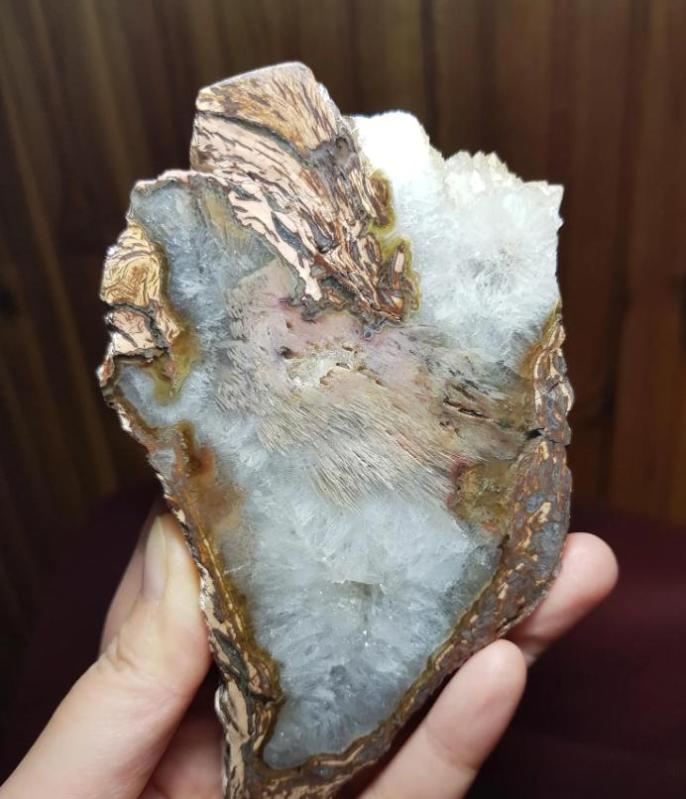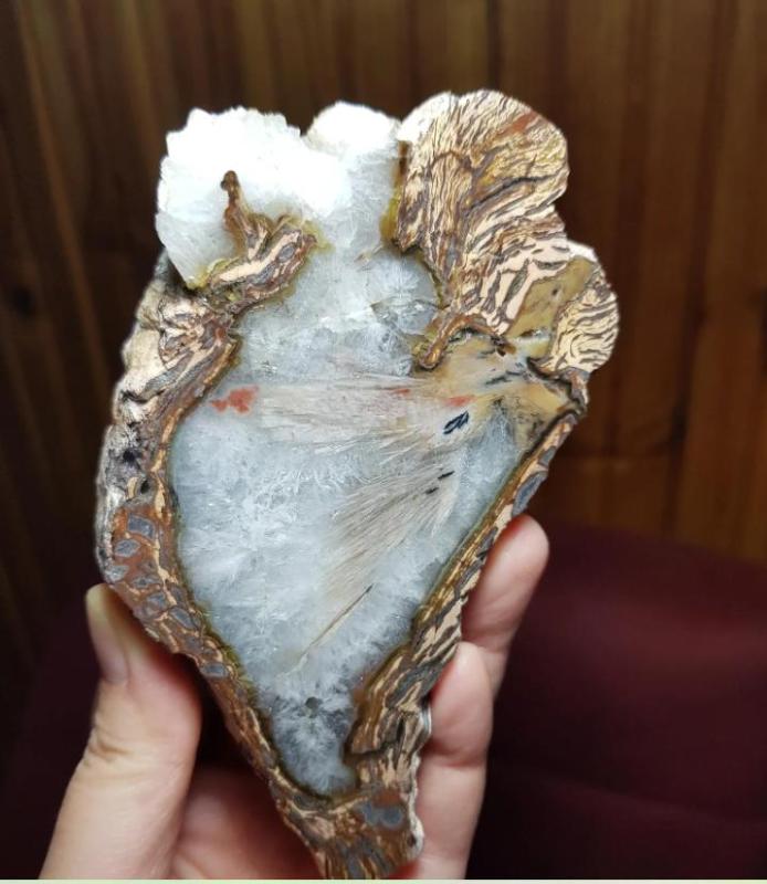 Druzy Taşlaşmış Ağaç Dilimi Petrified Wood: Renkli Akik Kırmızı Turuncu Bantlar (364g) - Benzersiz Koleksiyonluk Nadir Parça Kütle, dün kitantik’te satışa sunulmuştur.