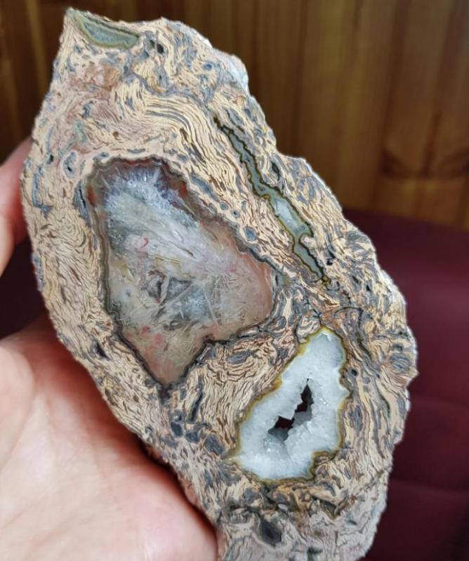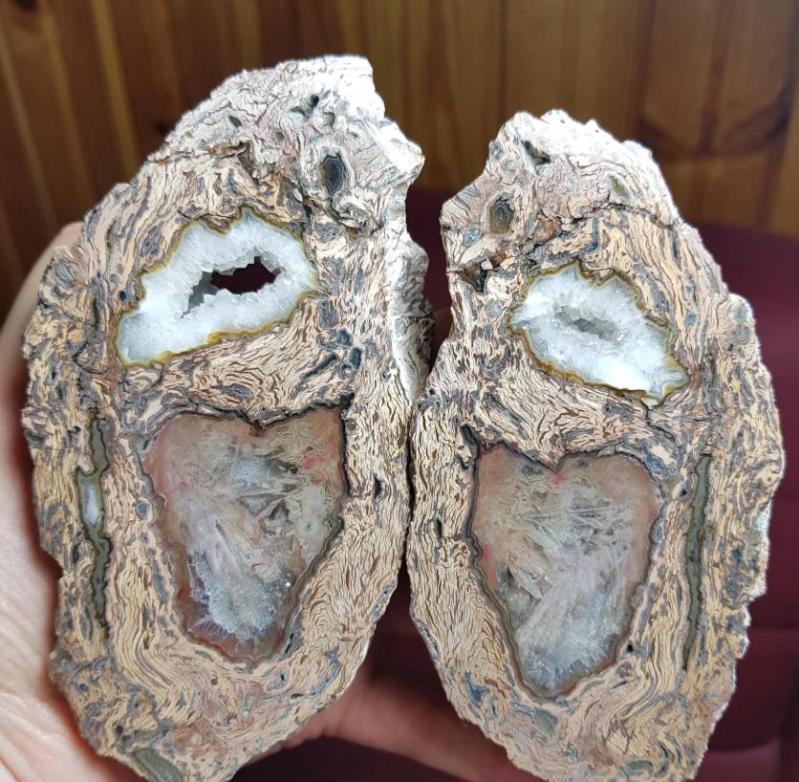 Druzy'li Taşlaşmış Ağaç Dilimi Petrified Wood: Renkli Bantlar - Ağırlık: 835g - Benzersiz Koleksiyonluk Nadir Parça Kütle, dün kitantik’te satışa sunulmuştur.
