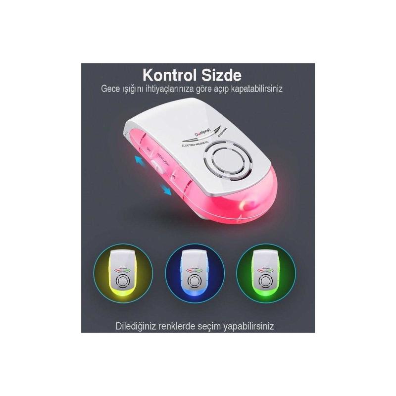 Ürün Detayları Dualpest AN-A633 Ultrasonik Fare Haşere Sinek Böcek Kovucu Çalışma prensibi: Haşereler, zararlılar yüksek ses basıncı sayesinde yiyecek, su ve barınak kaynaklarından vazgeçerek başka kaynaklara yönelecektir. Bu yüksek yoğunluklu ses dalgaları, insanların ve köpekler, kediler, balıklar, kuşlar ve çiftlik hayvanları gibi çoğu ev hayvanının işitme aralığının dışındadır. ÖZELLİK: Cihaz Elektromanyetik dalgalar ve ultrasonik dalgalar tarafından çalışıyor. Elektromanyetik dalgalar, kırmızı ışık aydınlatmasını gösterdiğinde, elektromanyetik çalışıyor ve 180 saniye çalışıyor, sonra aralık 180 saniye. Ultrasonik Dalgalar, iki farklı çalışma yöntemleri vardır, biri değişken süpürme ultrasonik, frekans 20KHZ-40KHZ ve sabit frekans 55KHZ' dir. Gece lambası, açma/kapama düğmesi sayesinde açıp kapatabilirsiniz. KULLANIM: Cihazı ihtiyacınıza en uygun yere takın. LED gece lambasına ihtiyacınız varsa, açın, aksi takdirde kapatın. Değişken veya sabit ultrasonik yöntemi seçin. Çok Fonksiyonlu Haşere kovucuyu yıl boyunca kullanabilirsiniz. Bu cihazın kullanımı sayesinde tehlikeli kimyasallara ve ortalığı pisleten tuzaklara ihtiyaç kalmayacak. DİKKAT: Cihazı halı kaplı yüzeylere, mobilyaların arkasına, perdelere veya ses dalgalarını emecek diğer yumuşak nesnelerin arasına/üstüne koymayın. ÖZELLİKLER: Ağırlık: 120g Gerilim: 220-240V AC ~ 50 Güç Tüketimi: 4V Frekans: Sabit frekans 55KHZ'dir Değişken frekans 20KHz - 40KHz