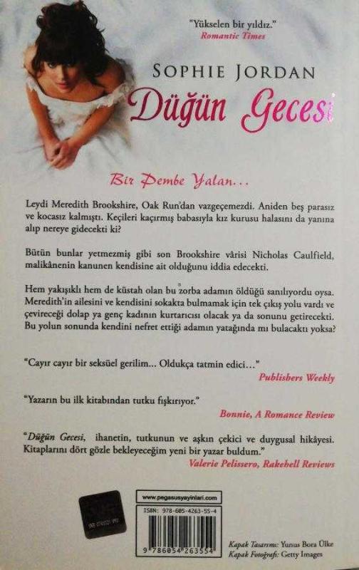 Düğün Gecesi, Sophie Jordan tarafından kaleme alınmıştır. Kitap 2010 yılında Pegasus Yayıncılık tarafından yayınlanmıştır. 383 sayfadır. Düğün Gecesi adlı eser Türkçe dilindedir.