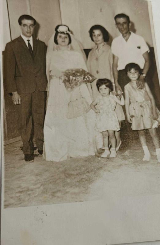 Düğün merasiminde elinde bir demet çicek ile poz veren gelin-damat ve yakınlarının fotoğrafı. FOTO PAK-İZMİR .ORİJİNAL SİYAH & BEYAZ 14x 9cm EBADINDA - 1940'LAR, 1950'LER, 1960'LAR ve 1970'LER, 9 ay önce satışa sunulmuştur.