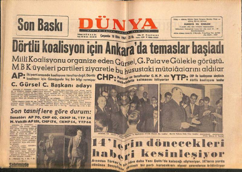 Dünya Gazetesi 18 Ekim 1961 - Kruşçef '' Harp Kaçınılmaz Değildir '' dedi - Dörtlü Koalisyon İçin Ankara'da Temaslar Başladı GZ152475, en son 29 gün önce güncellenmiştir.