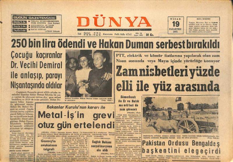 Dünya Gazetesi 19 Nisan 1971 - Metal-İş'in Grevi Otuz Gün Ertelendi - Farah Diba '' Tacımın Esiri Oldum '' diyor GZ143451, en son 20 gün önce güncellenmiştir.