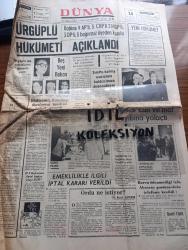 Dünya Gazetesi Sayfa Boyutu : 42*58 cm Sayfa Sayısı: 8 Yıpranma, sararmalar, kupon kesiği ve yırtılmalar zamana bağlı olarak görülebilir Not: Tam takım gazetedir