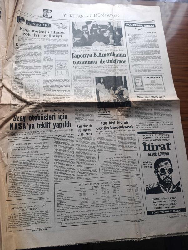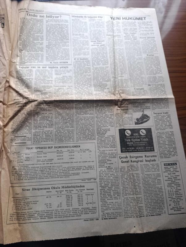 Dünya Gazetesi - Turkish Newspaper - 14 Mayıs 1972 - Suat Hayri Ürgüplü hükümeti açıkladı - kabine 9 Adalet Partili 5 CHP'li 2 MGP'li 3 DP'li 5 bağımsız üyeden Kurulu - İskender Cenap Ege Gençlik ve Spor Bakanı oldu - sınıfta kalma usulünün kaldırılması düşünülüyor - başbakan adayı Suat Hayri Ürgüplü Süleyman Demirel ile yaptığı görüşmeden sonra görülüyor fotoğraf - sabıkalılar toplatıldı - Ordu ne istiyor yazan M. Emin Aytekin - 47 il başkanının genel başkan adayı Bülent Ecevit - uzay otobüsleri için NASA'ya teklif yapıldı - kadınlarda FBI ajansı olabilecek - İstanbul Ankara radyo programı - sinema üzerine bir araştırma komedinin altın çağı yazan James Agee - Saygon'daki polonyalılar kapı dışarı ediliyor - Fenerbahçe'de futbol oynamam diyen Ostojic ani olarak belgrad'a gitti - Amigo Orhan Beşiktaş için canımı veririm fotoğraf - Eşref Aydın Fenerbahçe'de Genel sekreterlik görevinden istifa etti fotoğraf - Galatasaray Şeref turuna hazırlanıyor -Giresunspor Vefa önünde galibiyeti kaçırdı adlı eser, Kitap > Süreli Yayınlar > Gazeteler > Türkiye > Genel > Günlük kategorisinde İkinci El olarak satıştadır.