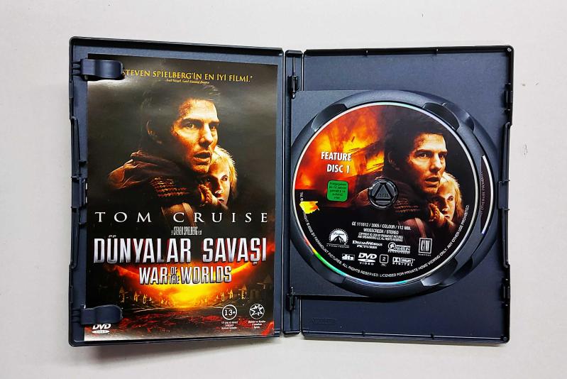Steven Spielberg'ün yönettiği ve Tom Cruise'un başrolünde olduğu efsane film ''The War of the Worlds''. 2005 yılında basılmıştır. İki diskli özel versiyondur. Diskler hologramlı baskıdır. Bu sebeple son derece nadirdir. Lütfen standart, tek diskli DVD baskıları ile karıştırmayınız. Diskler sıfır ve çiziksizdir. Test edilmiştir, sorunsuz çalışmaktadır. Kutu içerisinde film broşürü bulunmaktadır. Bu baskıya özel olarak, son derece geniş bir özel seçenek havuzu mevcuttur. Detaylar için fotoğraflardan kutu arkasını inceleyebilirsiniz. Türkçe dublaj ve Türkçe altyazı vardır. Kutulu DVD film arşivi yapanlar ve filmin hayranları için bulunması zor, nadir ve koleksiyonluk bir üründür.