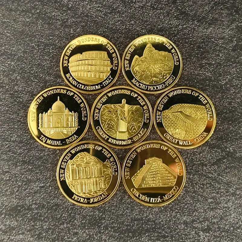 Dünya'nın 7 Harikası Büyük Harikaları Anma Madeni Seti - 7 Adet Altın Kaplama Anma Madalyonu