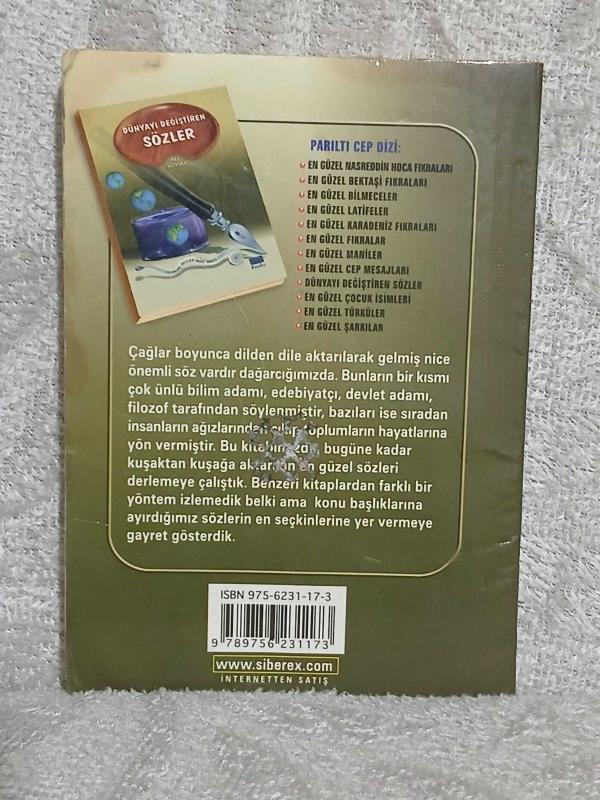 Dünyayı Değiştiren Sözler Cep Boy adlı eser, Kitap > Diğer Kitaplar > Sınıflandırılmayan Kitaplar kategorisinde İkinci El olarak satıştadır.
