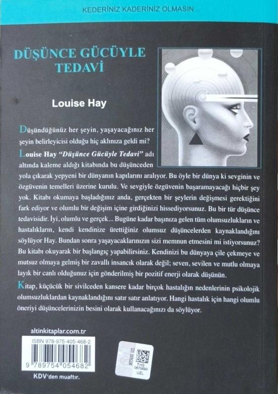 Düşünce Gücüyle Tedavi, Louise Hay tarafından kaleme alınmıştır. Kitap 2025 yılında ALTIN KİTAPLAR Yayınevi tarafından yayınlanmıştır. 231 sayfadır. Sayfa bilgisi 2.HM KAĞIT olarak belirtilmiştir. Düşünce Gücüyle Tedavi adlı eser Türkçe dilindedir.